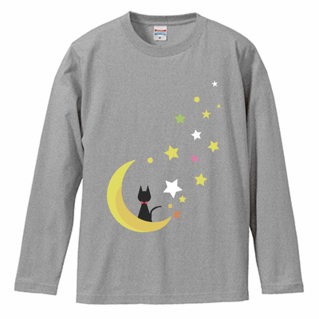 ミニマねこTシャツ ~ミニマルなネコの月の夢~グレー